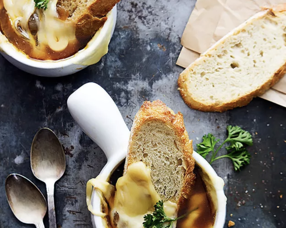 Има ли нещо по- уютно и вкусно от лучена супа през уикенда? Особено ако я хапваш с парче франзела, запечено с кашкавал Рикас!